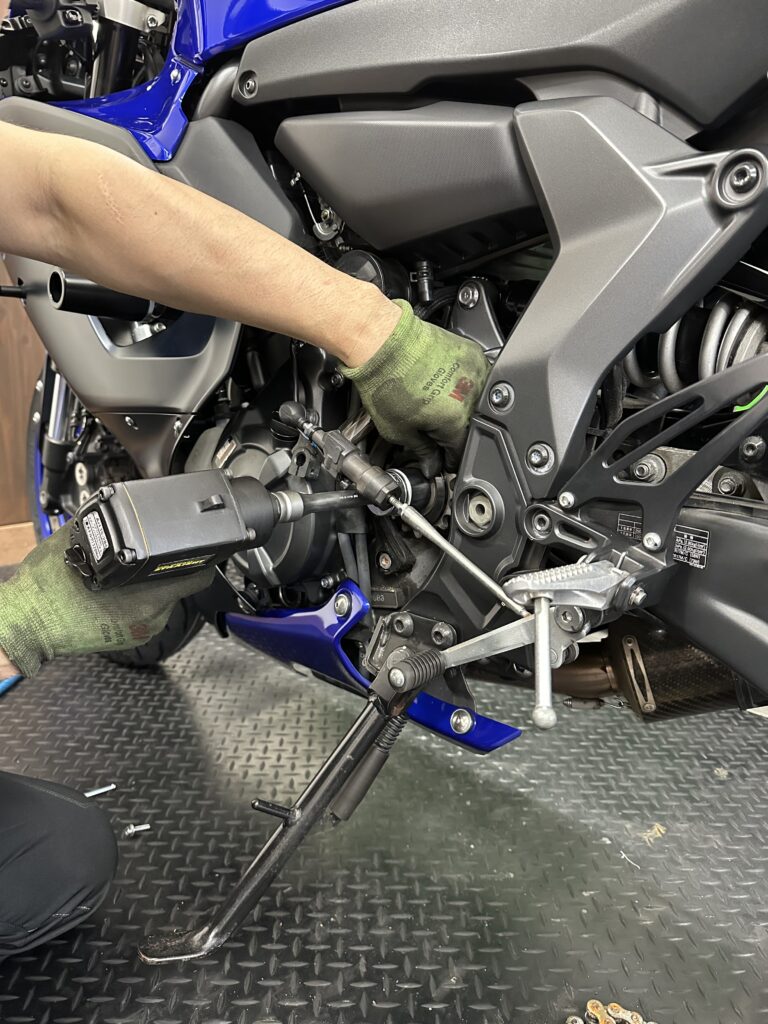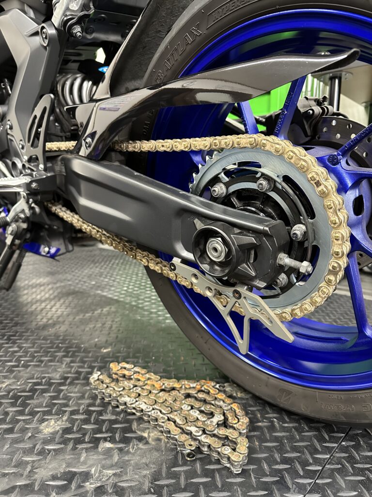 今回、フロントタイヤとチェーン・スプロケとオイル交換を一緒に作業させて頂きました。